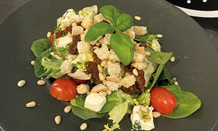 na oliwie z pomidorem świeżym, pomidorem suszonym, serem solankowym,