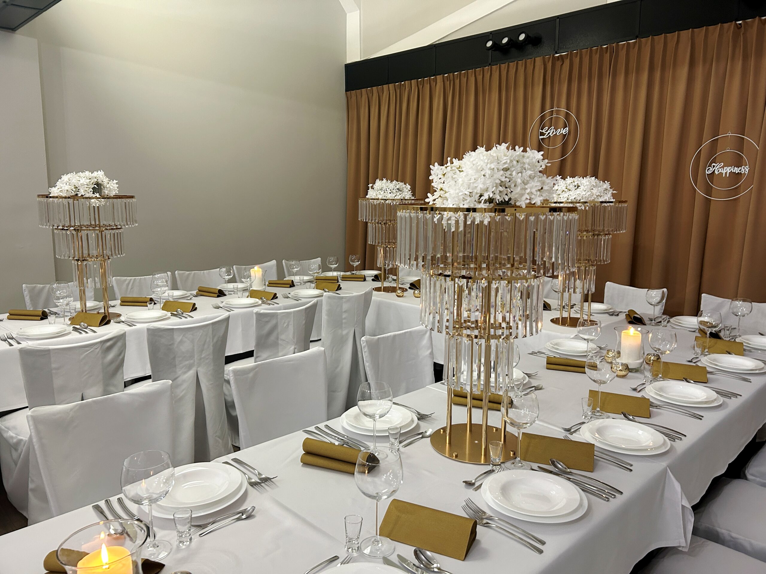 Ponieważ meble w salach są ruchome, mamy możliwość dowolnej aranżacji wnętrza. Można wybrać z kilku opcji dekoracji oraz dodatków.